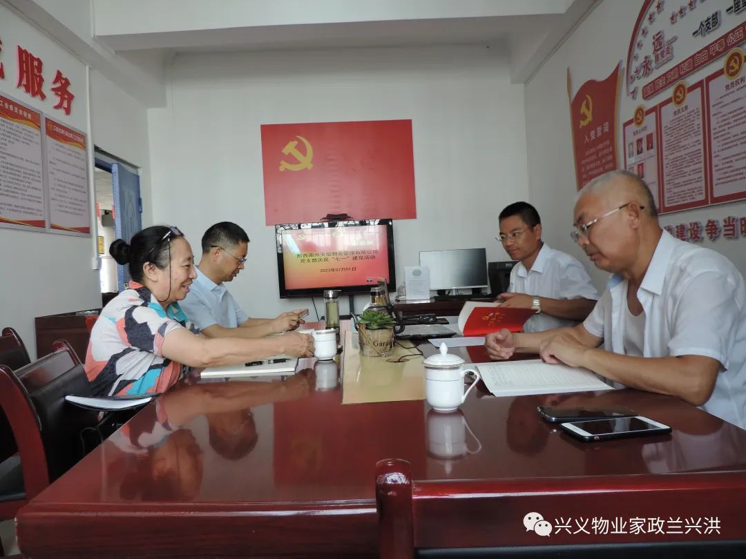为庆祝中国共产党成立102周年,天信物业公司党支部于2023年7月1日上午,在公司党员活动室开展庆祝“七一”建党节活动。公司全体党员参加。