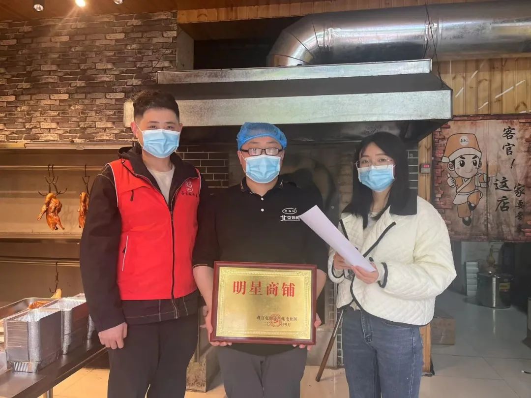 研讨会议结束后,社区工作人员根据此次研讨会议的精神要求,严格落实各项评选措施。首先,工作人员以网格员+志愿者分组的形式到提名门店内进行实地走访,根据五小门店创城要求,从店内、门前卫生,消杀记录、服务态度、诚信经营等方面对店内情况进行严格评估,评估合格的店铺,由工作人员现场为其颁发“明星商铺”牌匾。对于评估达不到标准的店铺,工作人员现场指出不足之处,要求立即整改。截至目前,第一批“明星商铺”的评选工作已全部结束,通过综合评比共选出15家优质门店。