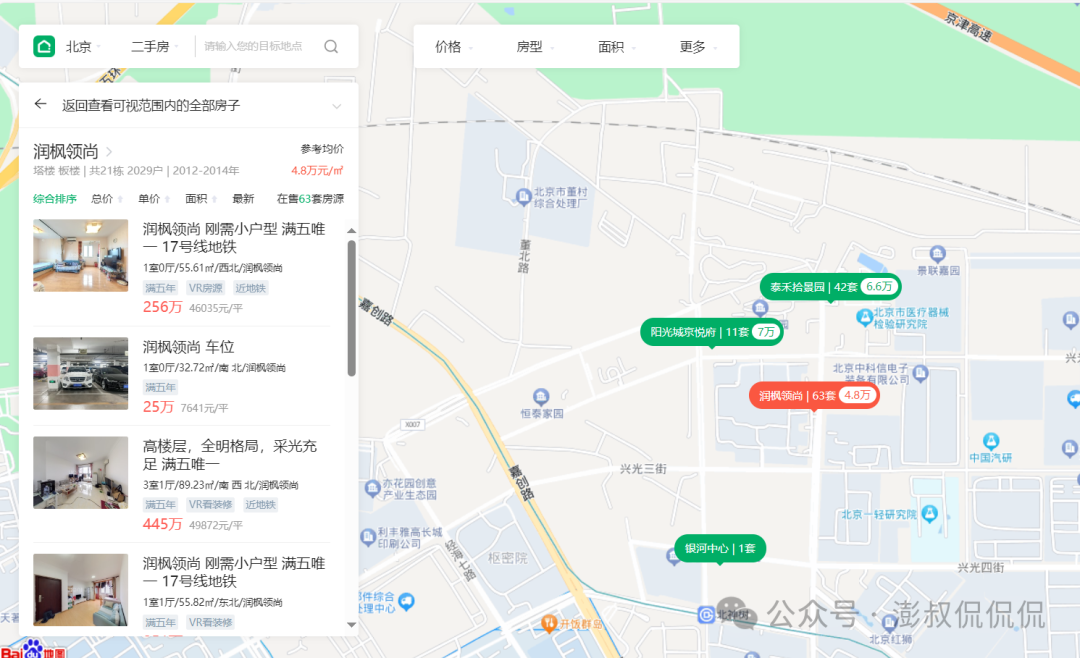 ⑤、这里的北京润府出现算是与隔壁的北京润府和北侧洋房社区形成一定的错配,这里还有自住型商品房阳光花庭,共有产权房恒泰家园,定向安置房首创·美林湾(暂无交易)。北京润府算是完善了这里的小区序列。这里在地铁17号线开通之前至开通迎来了一波涨幅。接下了就是补齐短板商业+北京润府的到来在把这里的热度炒热一下,拉升一下板块的涨幅(新盘利好北侧的润枫领尚的二手房价格),未来学校再确定下来,能把这里的价格夯实。未来也就这样了(进入二手房与这里PK的区域是垡头、豆各庄、台湖等区域,都是依靠地铁通勤前往国贸等市区产业区。这里多了亦庄经济开发区这一选择)。