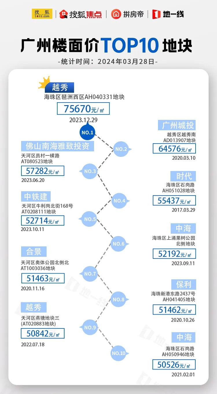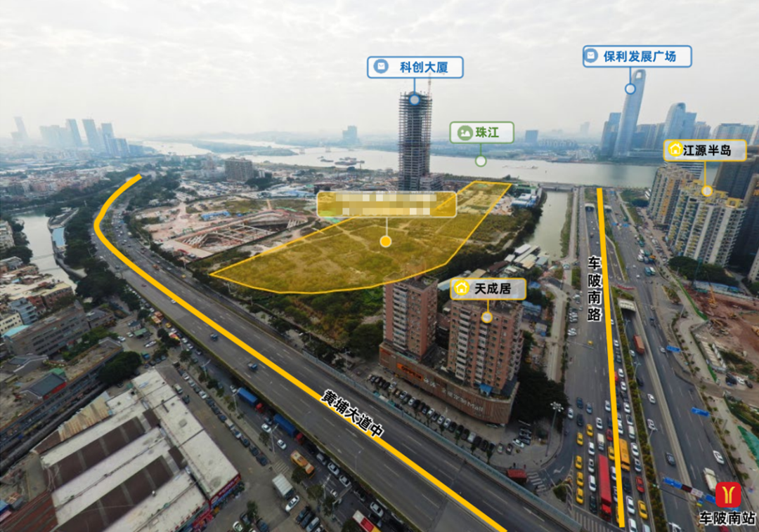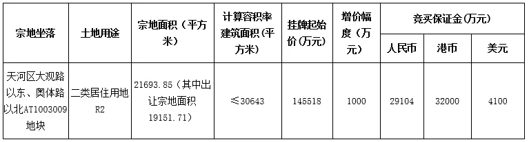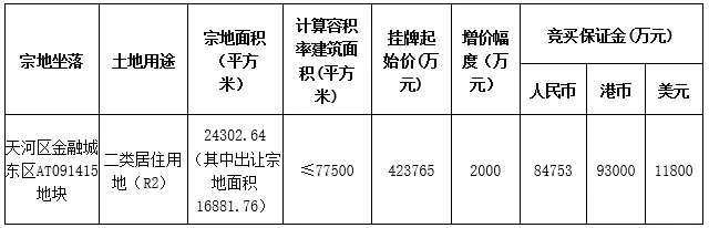 宗地面积24302.64㎡(其中出让宗地面积16881.76㎡),计容建面77500㎡,挂牌总价42.3765亿元,折合起拍楼面地价达54679元/㎡,仅凭挂牌楼面地价就跻身广州楼面价TOP5。