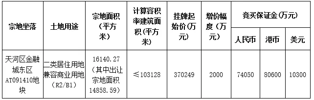 金融城东区AT091410地块,紧邻广州浪奇化工厂地块二。宗地面积16140.27㎡(其中出让宗地面积14858.59㎡),计容建面103128㎡,挂牌总价37亿元,折合起拍楼面地价35902元/㎡。