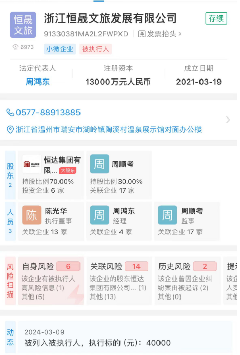 该项目的负责公司是浙江恒晟文旅发展有限公司(下面简称恒晟公司),大股东是恒达集团有限公司,持股比例占70%。