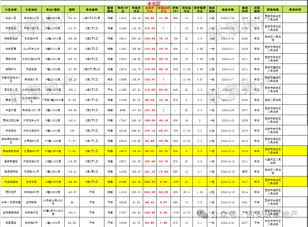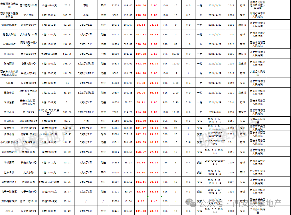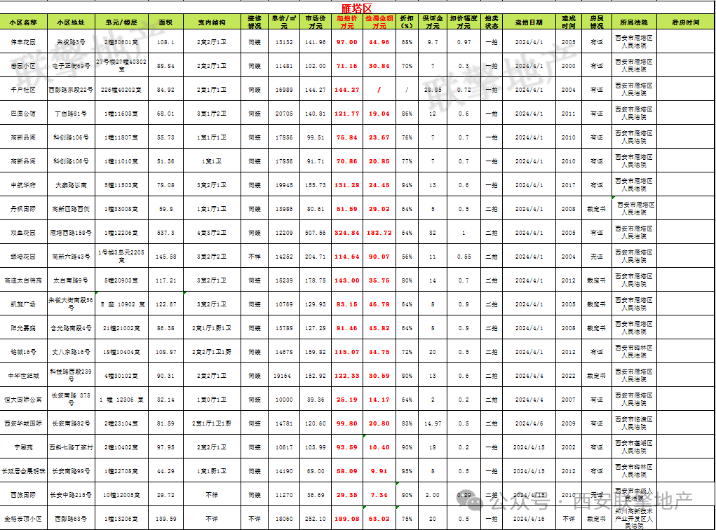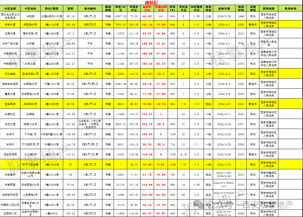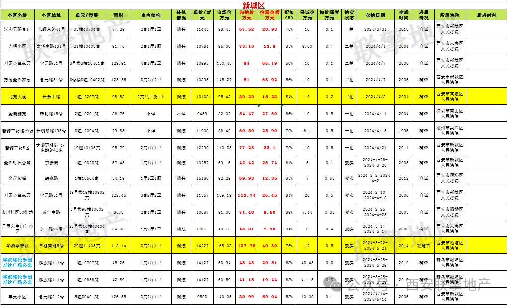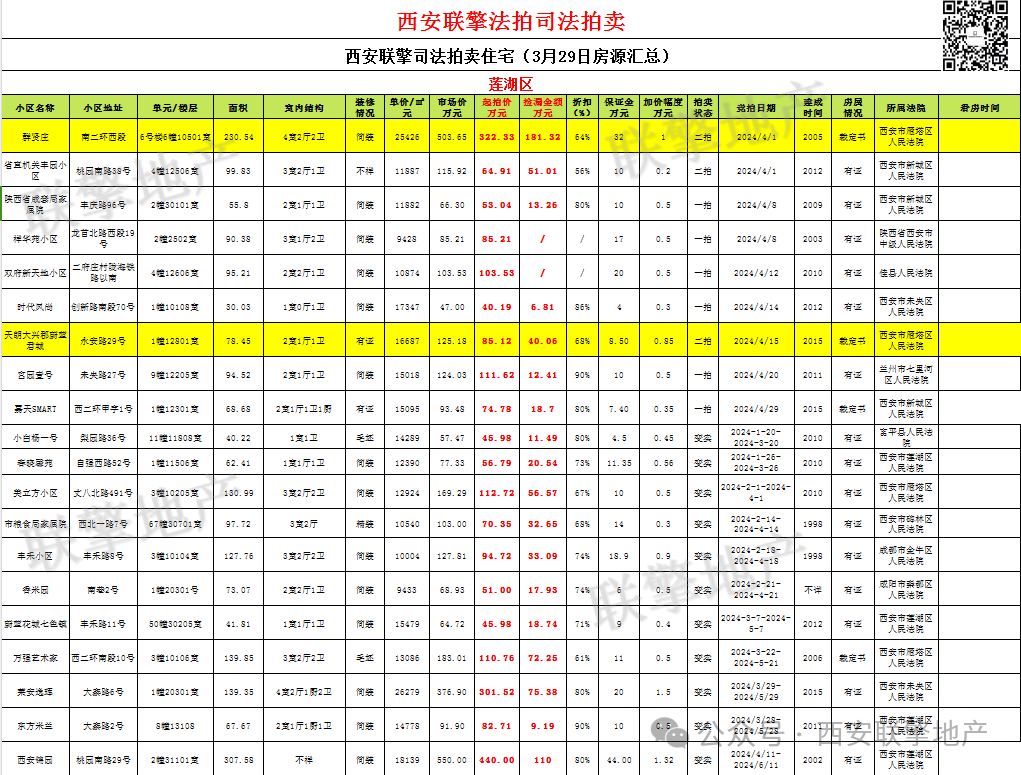 3月29日西安市住宅类法拍房新增房源信息