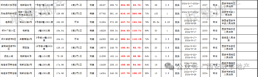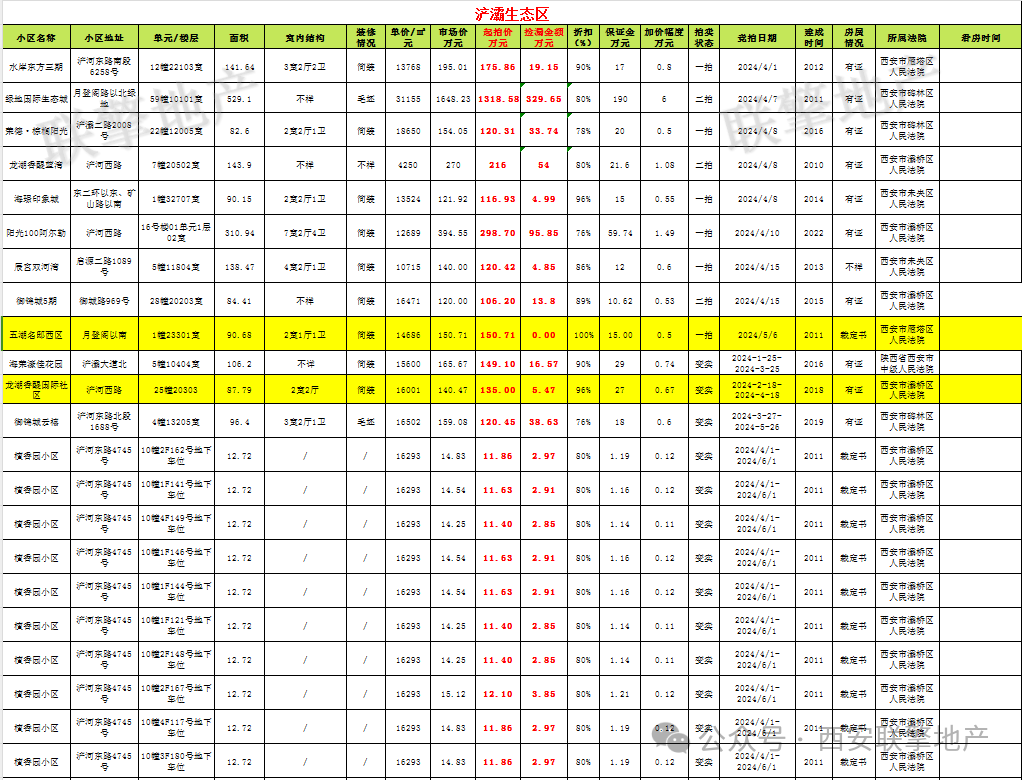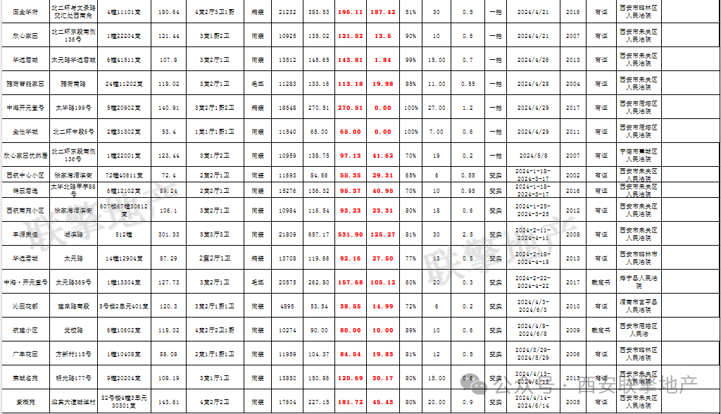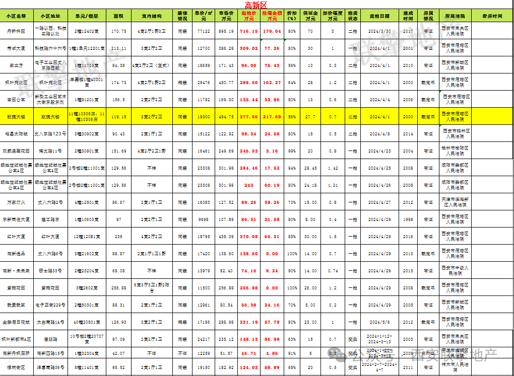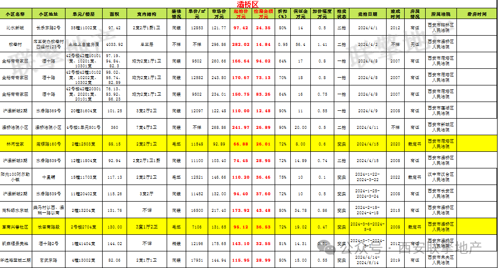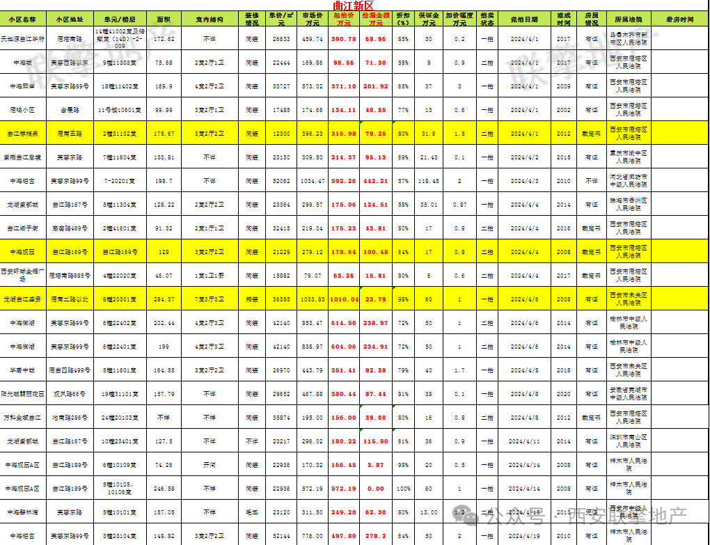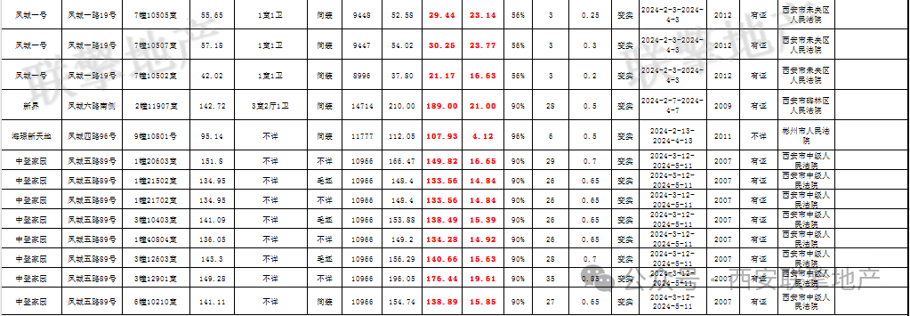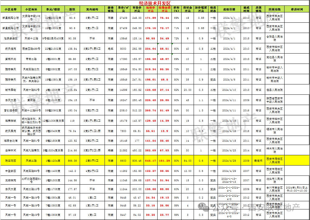 3月29日西安市住宅类法拍房新增房源信息