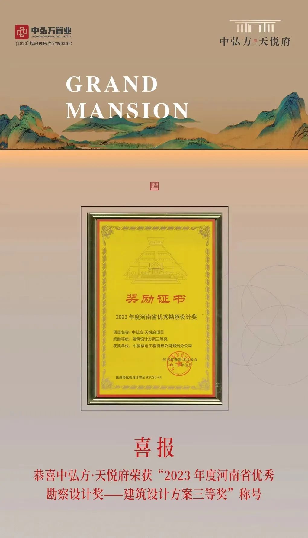 这个奖项是在河南省数千家建筑项目中脱颖而出,摘得荣誉,是对天悦府洋房设计风格的由衷肯定。