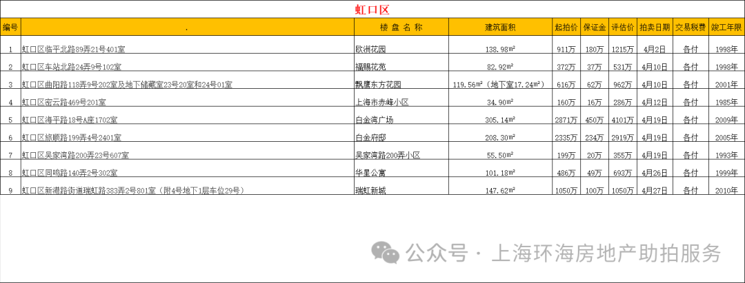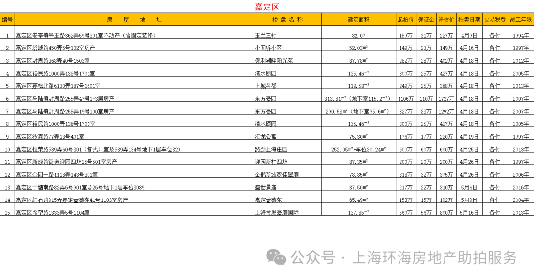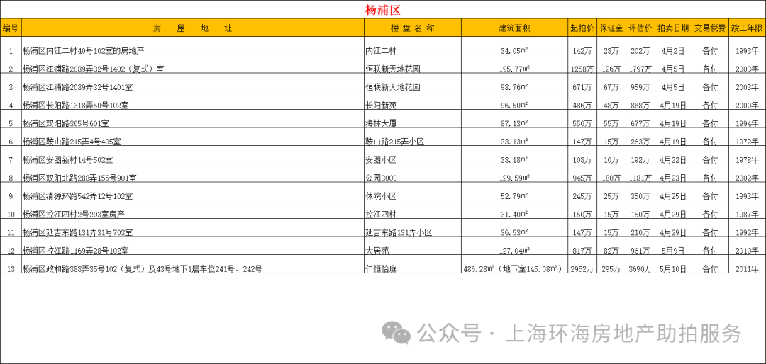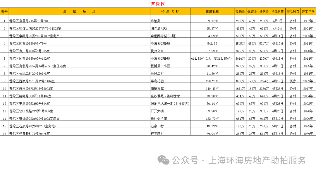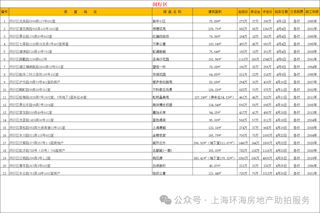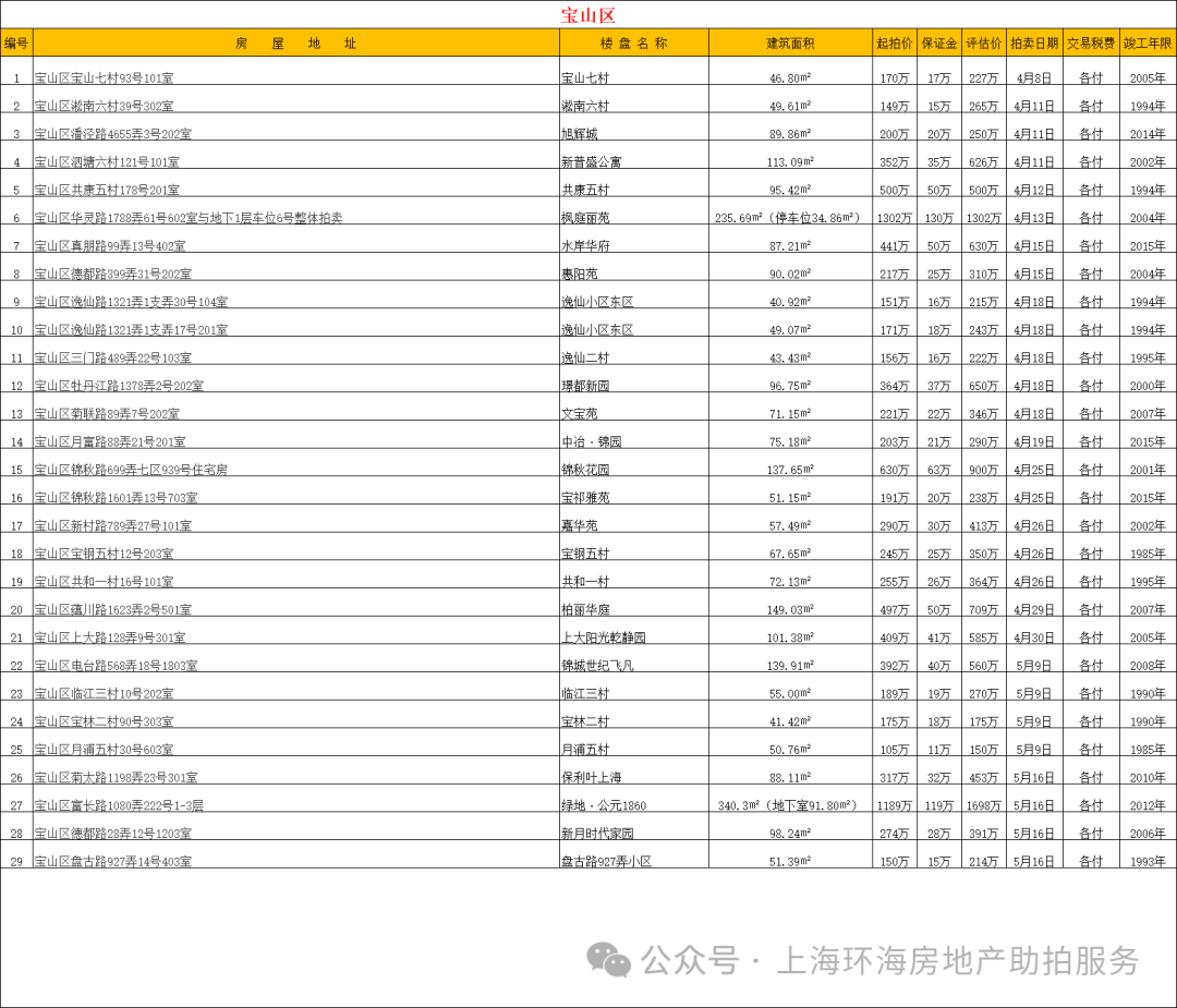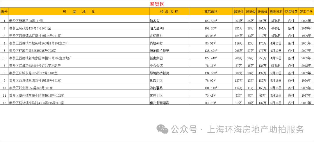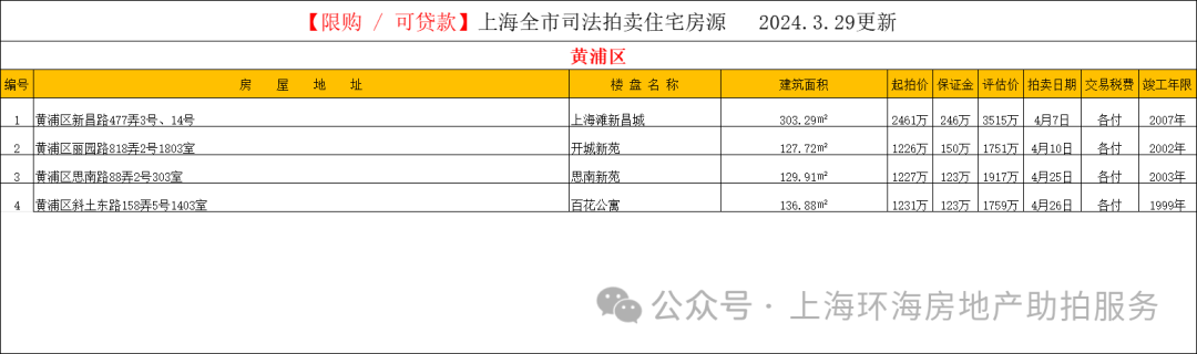 上海全市司法拍卖住宅房源 2024.3.29更新