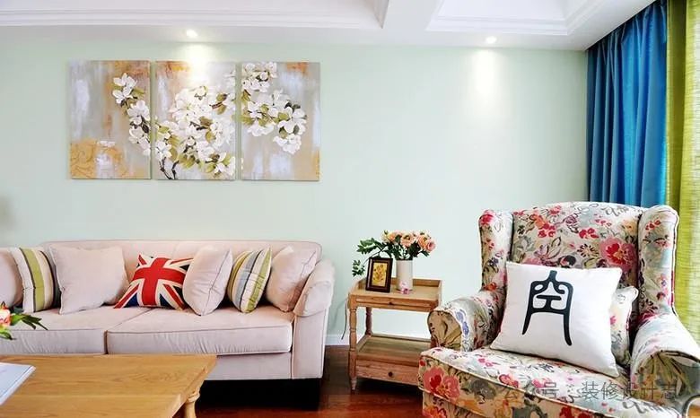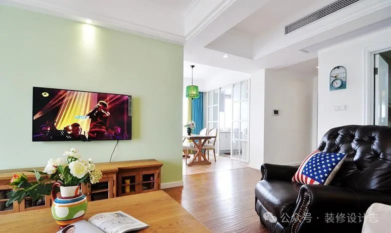 一直往前走,来到客厅。纯色的墙面和木地板,看起来更加敞亮;