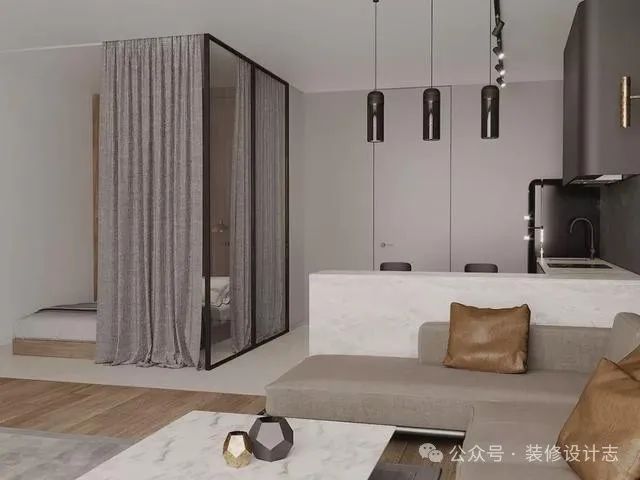 假如感觉私密性不高,安个窗帘就能解决问题,它能够 恰当模糊室内空间的界限,兼具主人家隐私和开放感,展现出1个很有活力的室内空间。