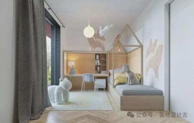 只不过,儿童房间作为小孩子睡觉、学习与游戏玩法活动的小天地,推荐选用床与衣柜合在一起的设计构思,留出充足的活动室内空间,让他们能够 畅快地玩耍和探索。