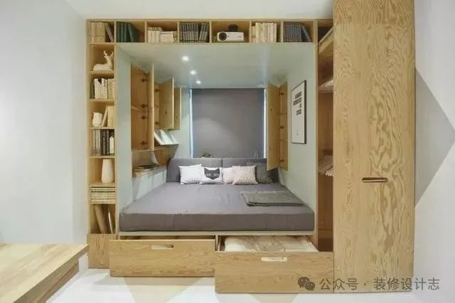 榻榻米通过改造后,能够 变为集收纳整理、睡觉于一体化的小户型房子神器。而实现这种多用途设计方案的最好方法,便是将榻榻米与各种各样柜体结合在一起。