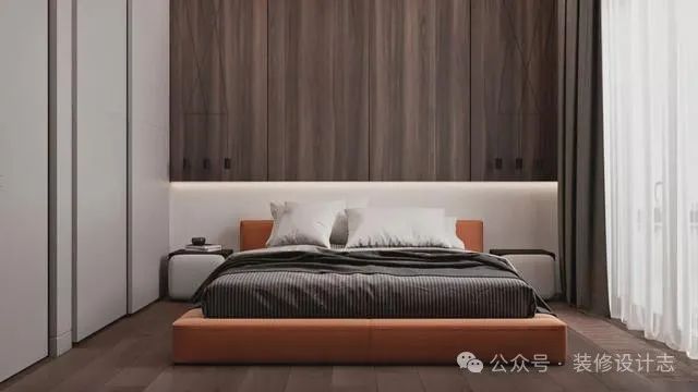 而床尾和床头部分也能够合理利用起来,打造出简易实用的一体式衣柜,或将衣柜与书桌结合在一起,恰当地提高室内空间的功能性。