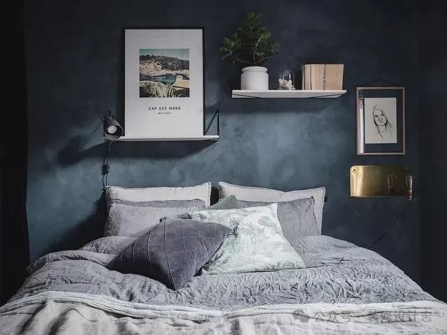 还有一种加宽床头板的设计构思方法,也可以取代床头柜的一部分基本功能,并且看上去漂亮大方,更能凸显房主的品味与风格。