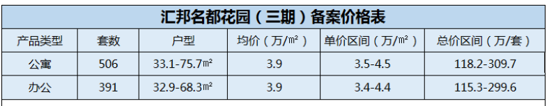 汇邦名都花园一二三期各有一栋公寓办公高层,分别为31F、22F、37F层高。汇邦·名都花园将有建面约42-81㎡SOHO产品及商务公寓,为70年产权。