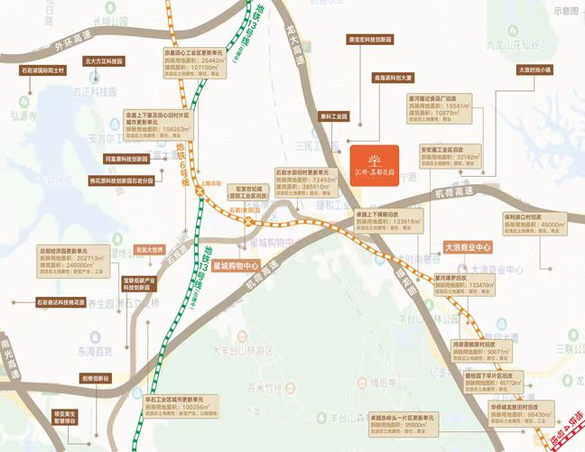 百万旧改,焕新活力 ,项目荣属深圳十三五规划城市更新重点片区,汇集15大旧改项目,石岩水田旧村、总部经济园更新项目建筑面积均超20万㎡,片区拆除用地总面积超百万平米,京基、宏发等地产品牌抢滩。旧改助推公共配套、基建工程提速建设,区域价值先机,抢占正当时