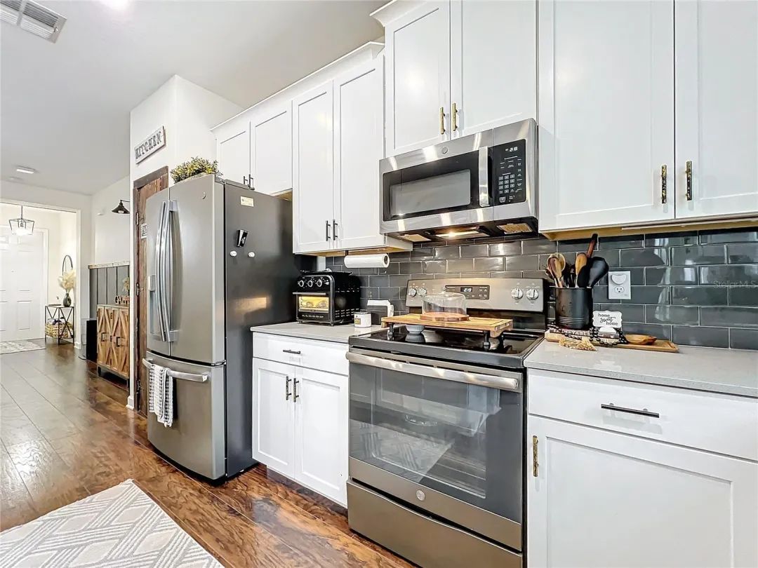 The Trails at Moss Park是一个美丽的社区,位于诺娜湖Lake Nona附近,拥有一流的学校!这间3卧、2.5浴室、2车位车库的联排别墅是一个非凡的居住空间!没有后方邻居。门厅通向华丽的厨房,配有42英寸橱柜、石英台面、石板电器和一个俯瞰大房间和用餐区的岛。所有便利设施均为不锈钢,状况良好。楼下有一个半浴室。楼上有3间卧室和2间浴室。洗衣房位于卧室之间,位置便利。社区设有游泳池、自然小径、众多池塘和游乐场。