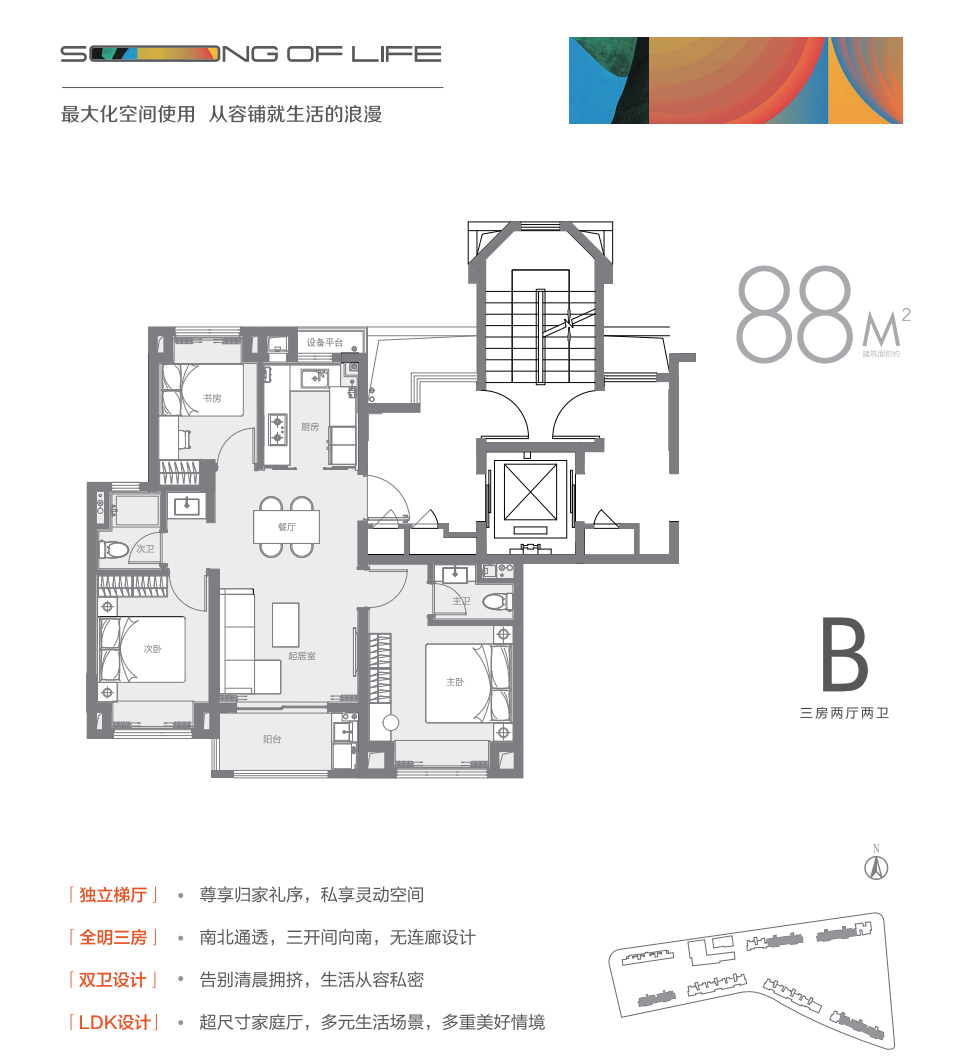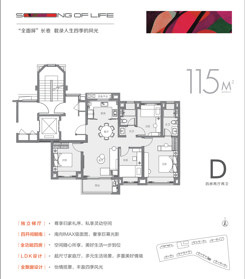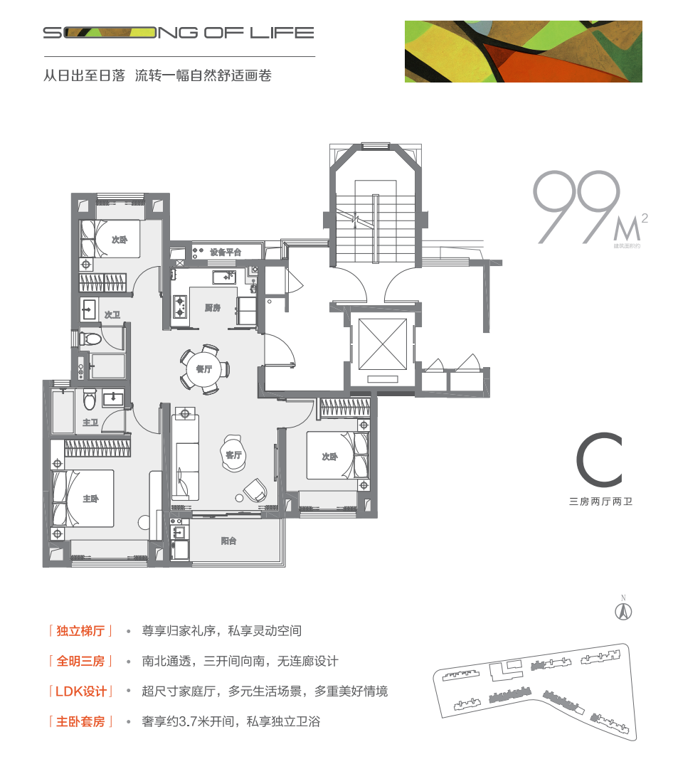 · 客餐厅一体化设计,外接阳台,尺度感和视野俱佳;· 无连廊设计,电梯厅直接入户,私密性强,空间使用率高。除了户型之外,“和字系”既保留邻里之间真实的烟火气息,又主张新时代的生活方式,打造年轻化、场景化、社交化的多元生活场景。