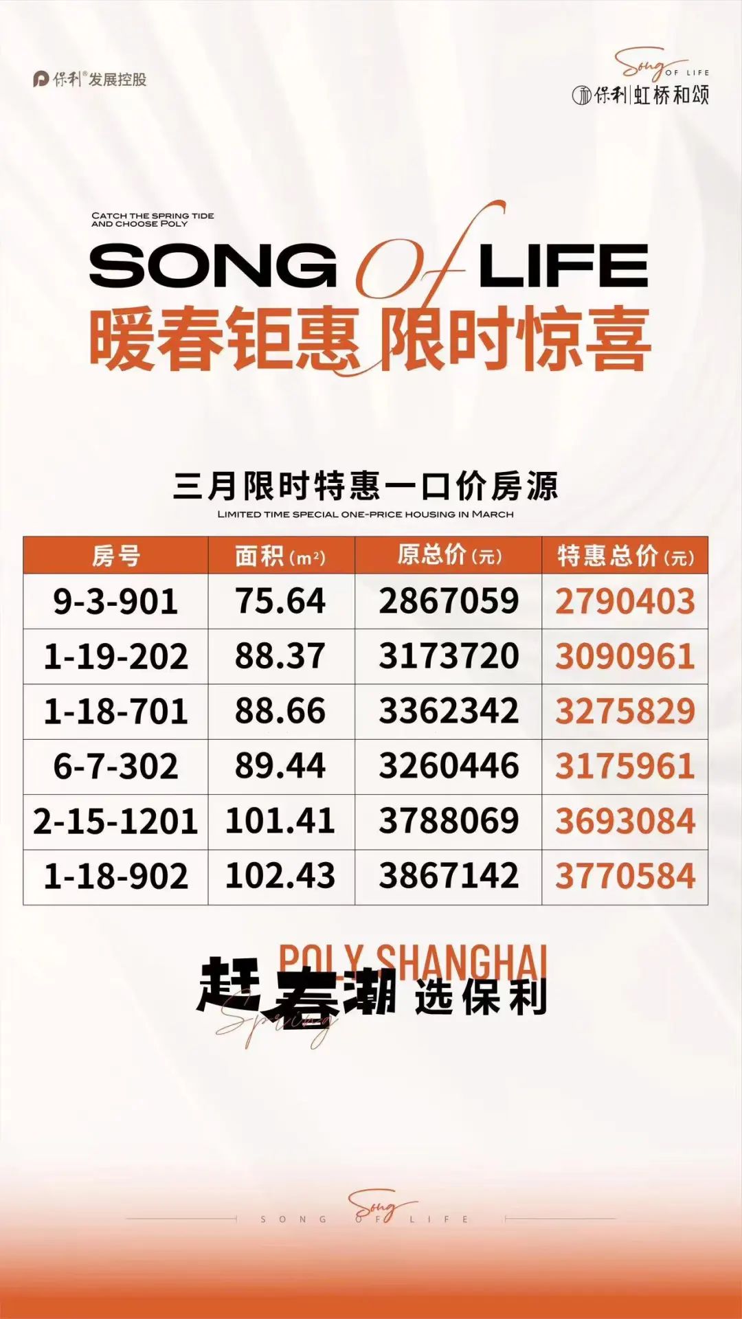 但现实总是很无奈,要么放弃居住的舒适度;要么选择出行困难的偏远地区...上海能实现通勤便捷,且总价200万+的新房无比“稀缺”!而保利虹桥和颂就是这个“破局者”!200万+买虹桥新房,且带给大家的远超想象👇目前项目推出少量一口价房源,感兴趣的抓紧时间上车👇