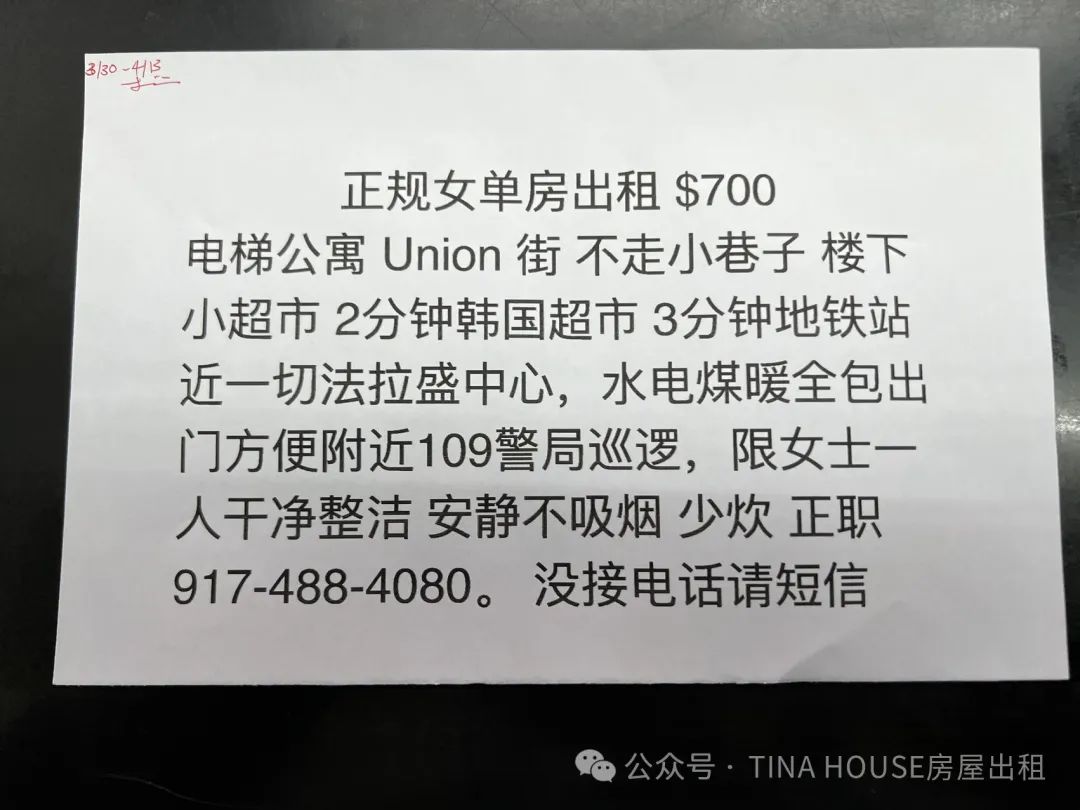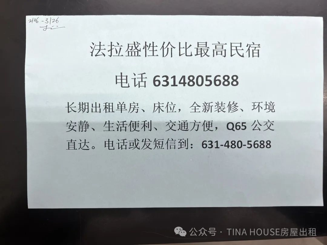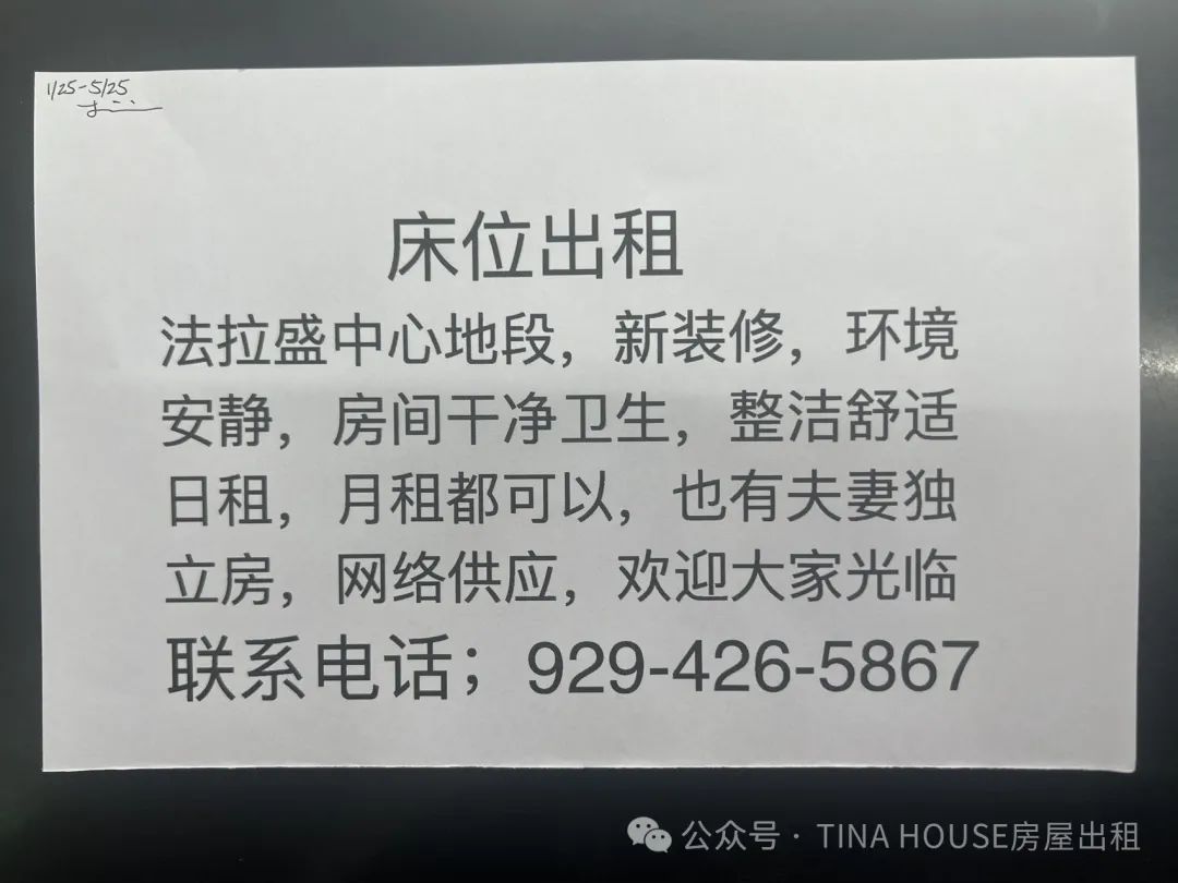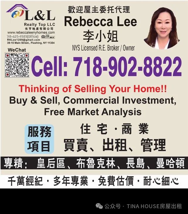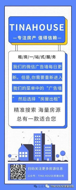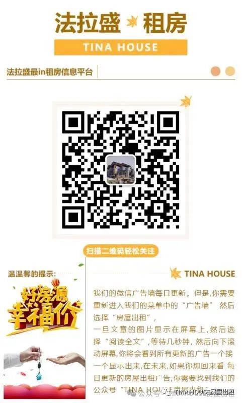 谢谢您加入了TINA HOUSE 房屋出租微信广告墙公众号。为了方便用户,我们特别设计了新的公众号页面,让您和您的朋友可以更容易的看到法拉盛地区最新的免经纪费租房信息。