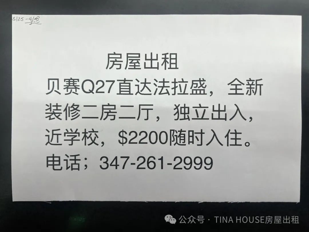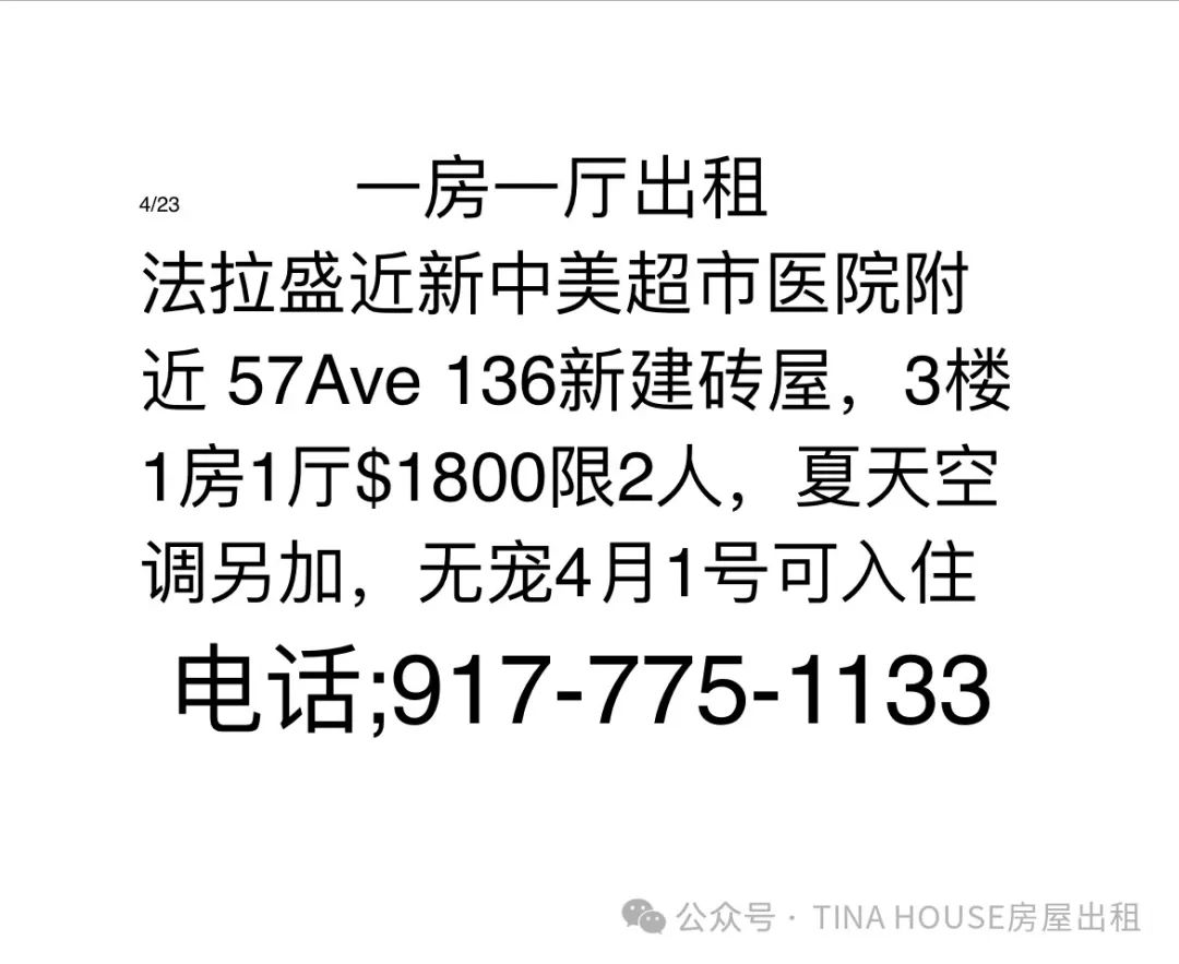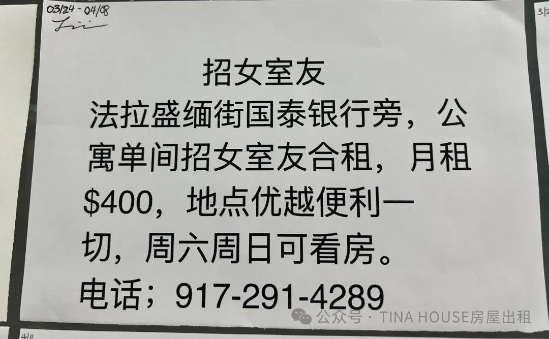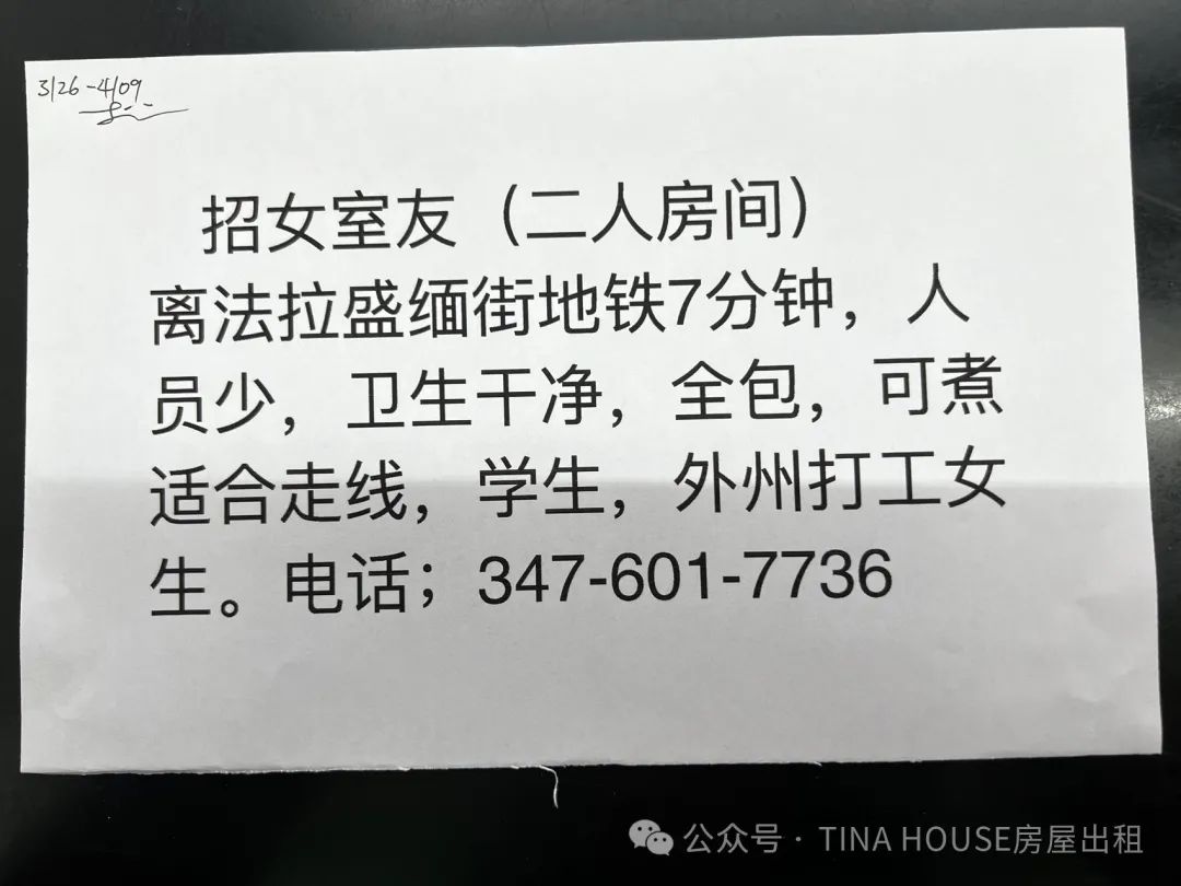 谢谢您加入了TINA HOUSE 房屋出租微信广告墙公众号。为了方便用户,我们特别设计了新的公众号页面,让您和您的朋友可以更容易的看到法拉盛地区最新的免经纪费租房信息。