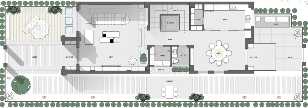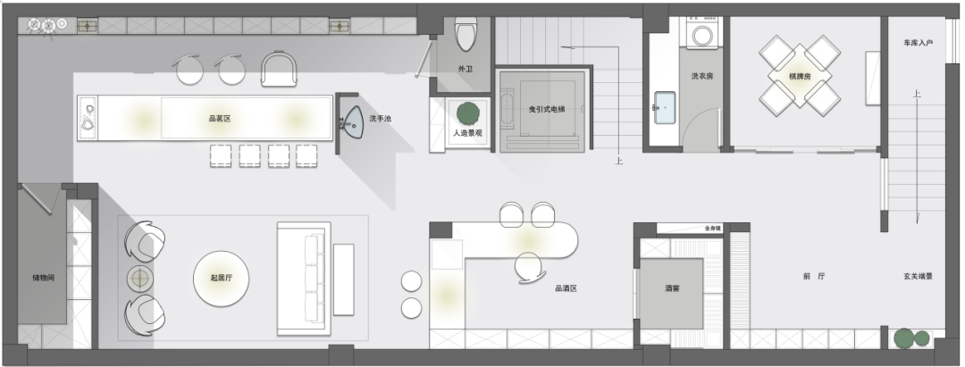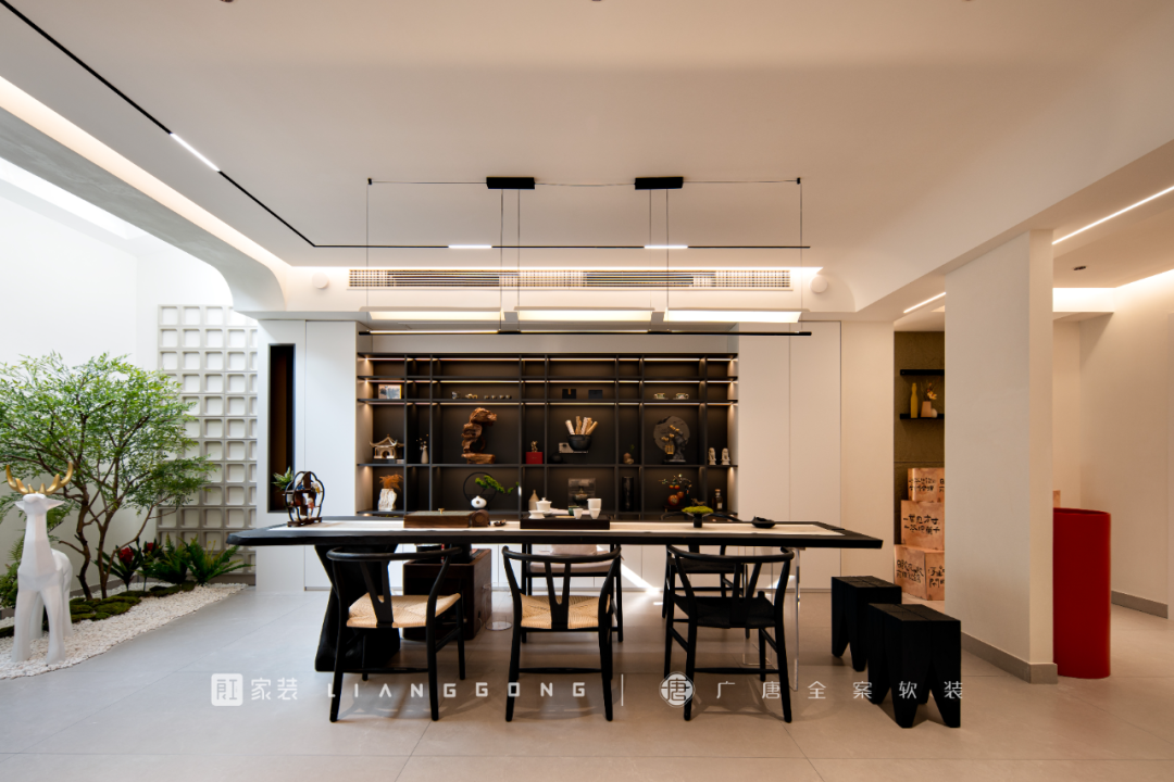 地下室设计成了集美学与实用性为一体的多功能空间,包含休闲区、洽谈区、茶室区等。