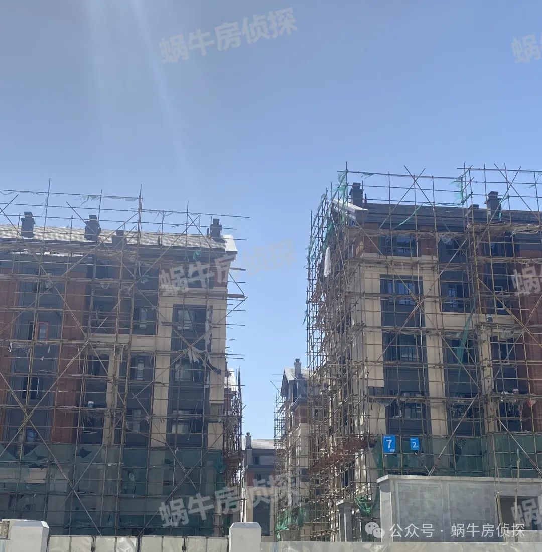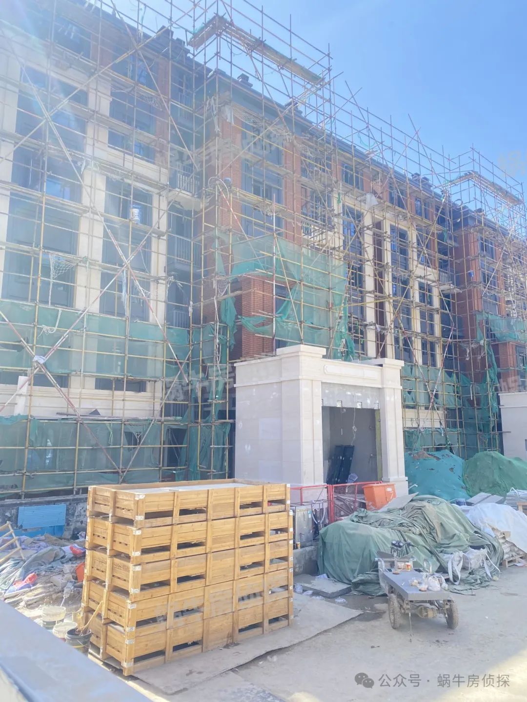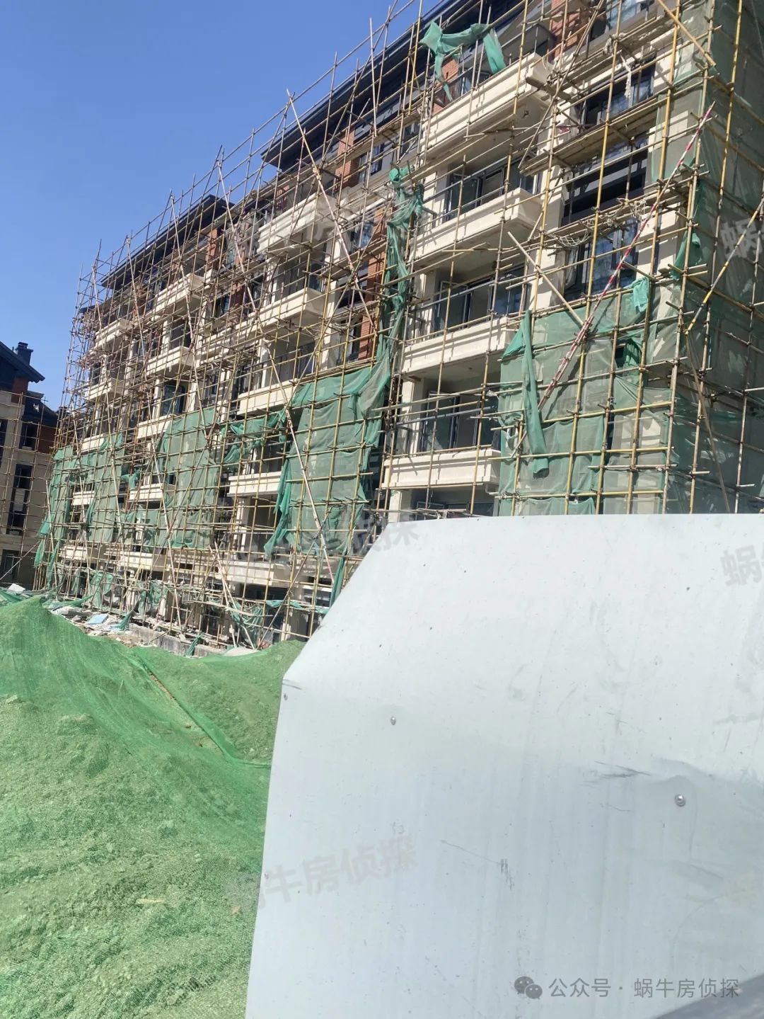 各个楼栋实拍,别墅区和洋房区进度快的单元门都已经完工啦,脚手架还没有拆除,进度慢的楼栋窗户还未安装呢!咱们看看视频吧!