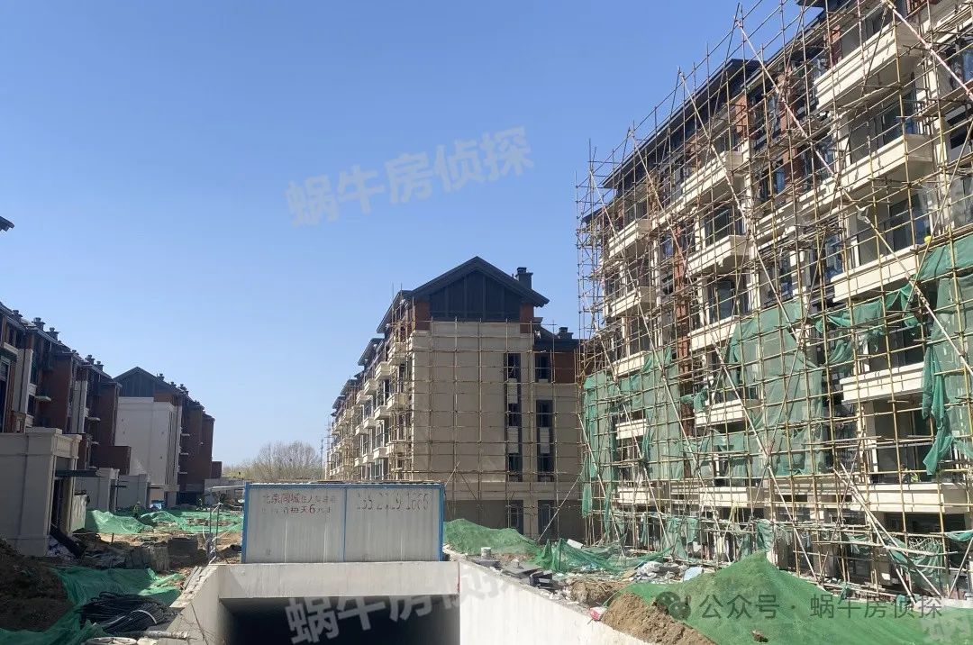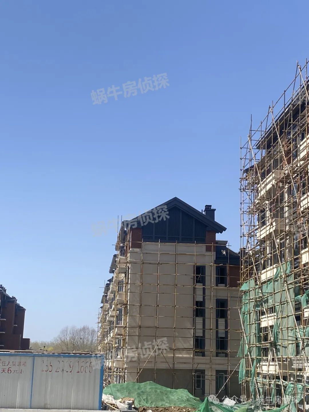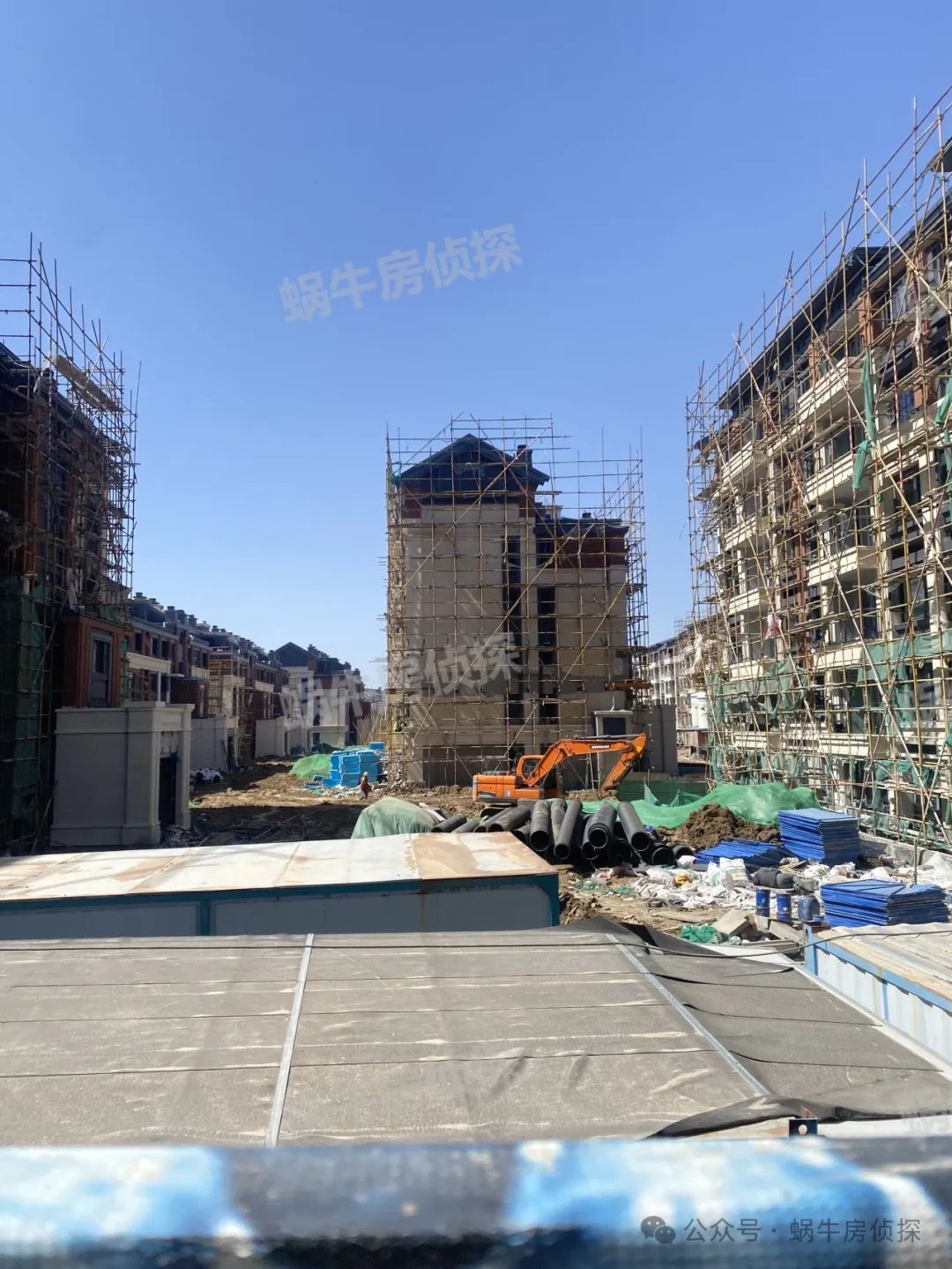 各个楼栋实拍,别墅区和洋房区进度快的单元门都已经完工啦,脚手架还没有拆除,进度慢的楼栋窗户还未安装呢!咱们看看视频吧!