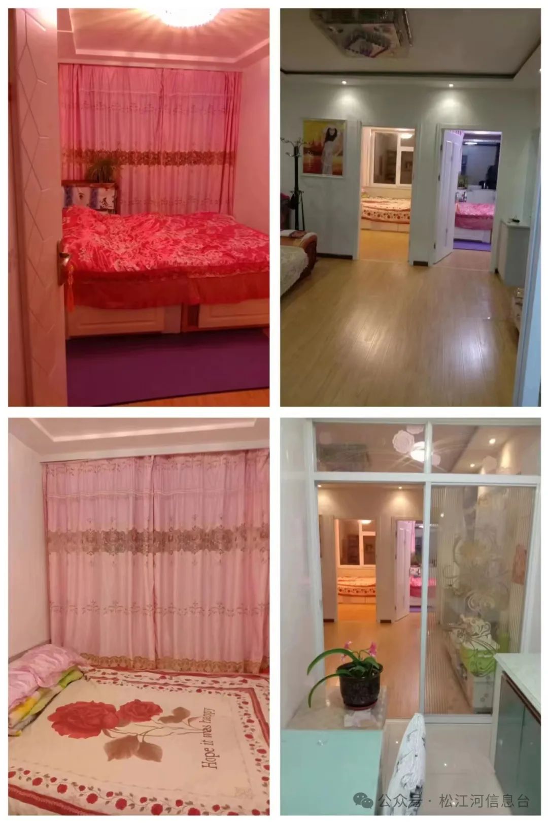 松江河镇中心,迎宾B区2楼100.69平,老式装修,前后阳台,采光好,镇中心,临近广场,周边商业圈,手续齐全,房照满五,随时过户,最低价20万,非诚勿扰,不讲价。