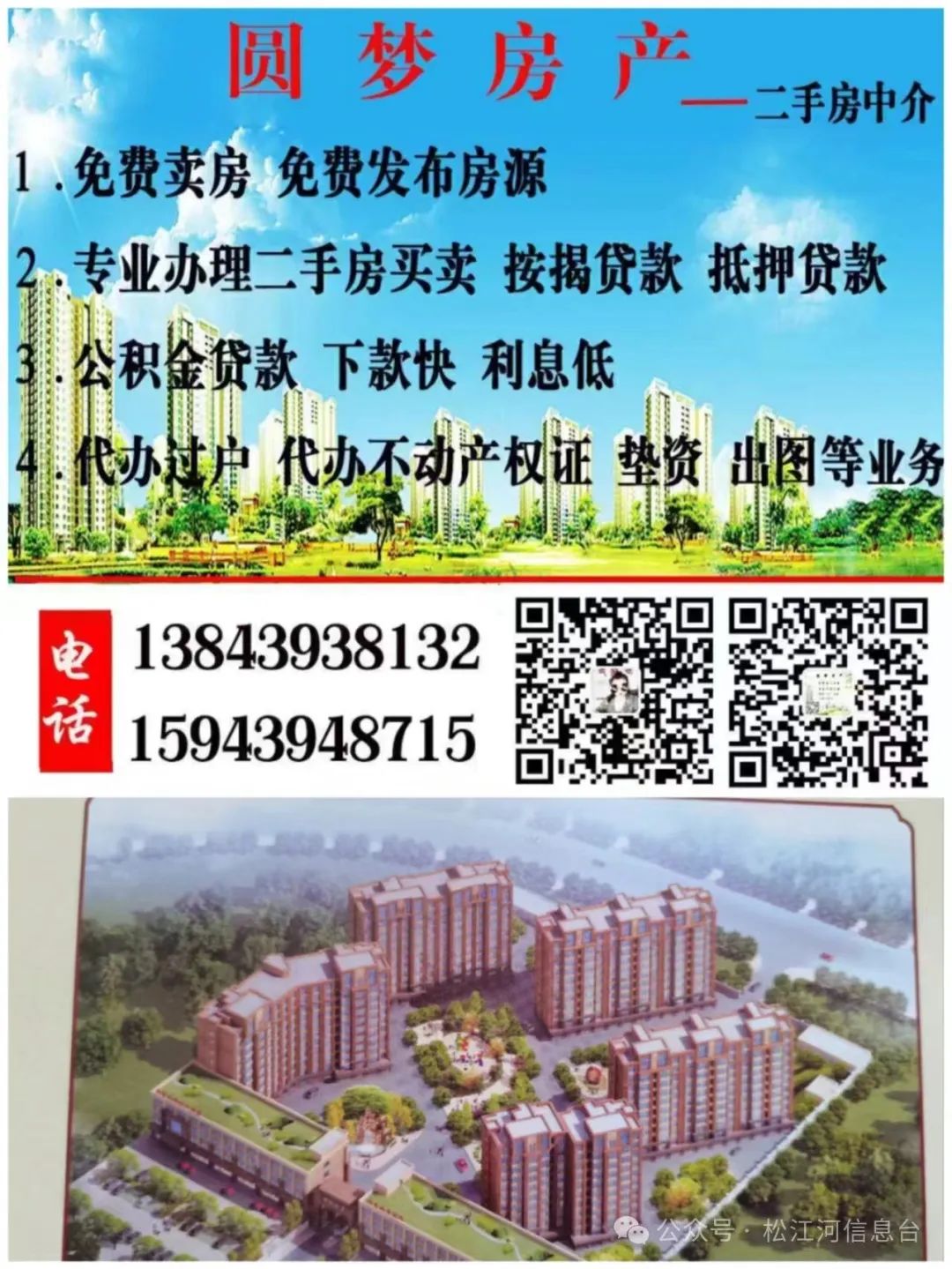 (1)松江河贵宾小区25号五单元六楼出售,80.83平南北通透离实验小学100米,房东急用钱低价出售,随时过户
