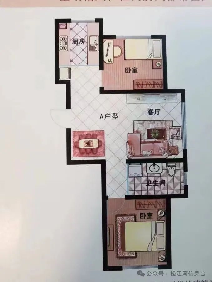 松江河,万豪小区,多层,楼梯,3楼,2室一厅,71平,南北通透,卫生间明卫,5年前新装修未入住,现在房间没有冰箱,其他都有,拎包入住,所有家电家具都是新的,不是买二手的