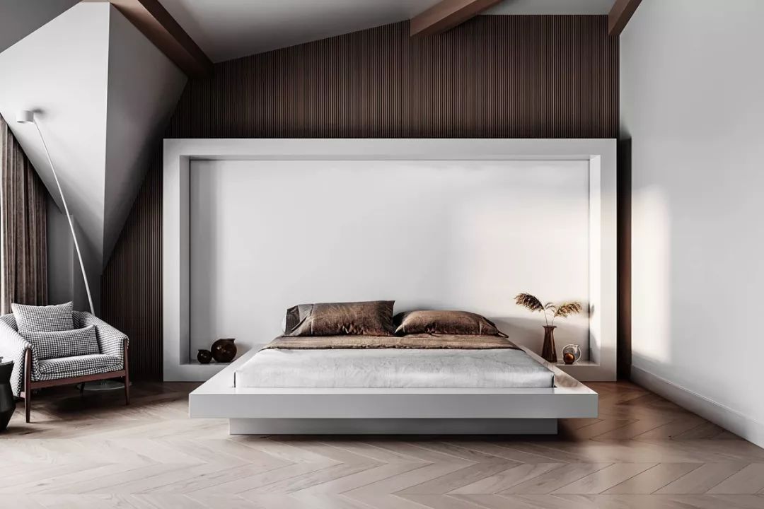 极简的矮床能改变卧室整体环境,卧室不再是传统的“床+床头柜+衣柜”固定组合,更能呈现出多样的美感。