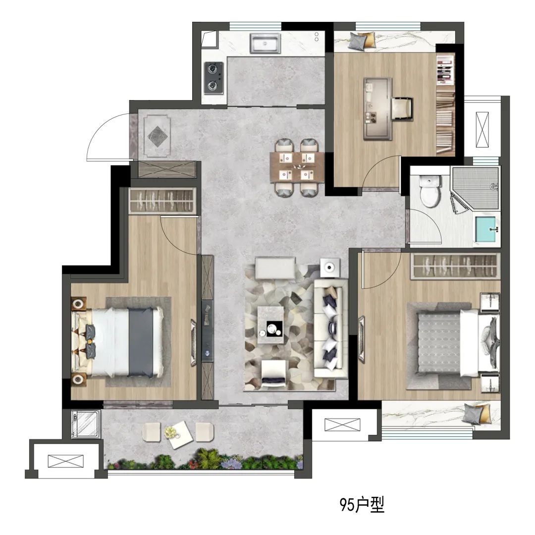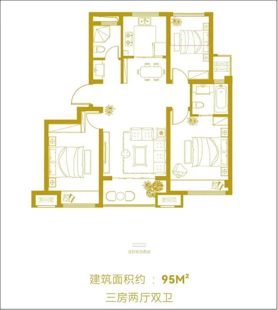 洋房全龄段户型,小高层多功能三房。建面约93㎡户型非常适合当代青年快节奏生活。