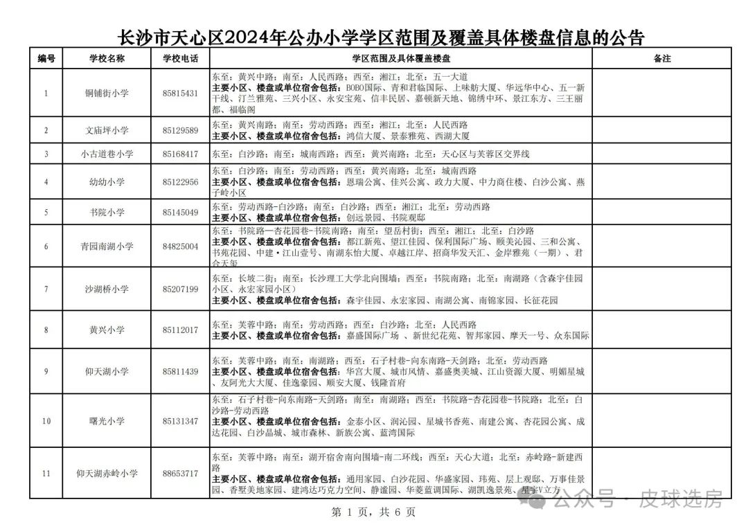 天心区教育公布2024年天心区小学学区范围,报名时间为4月1日-4月15日。