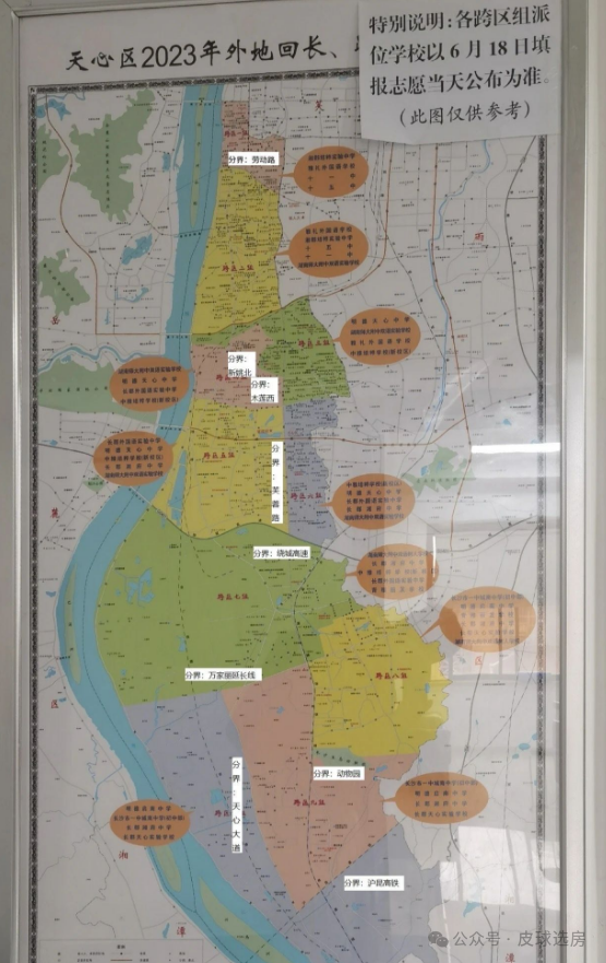 “外地回长、跨区派位”是指,小学不是在天心区范围内的小学读的(比如在雨花区或者外地外省),但是初中想在天心区读书。那么这时候如果买了天心区范围内的房子,一样可以微机派位,每个区的微机派位也是有四五个学校随机分配。