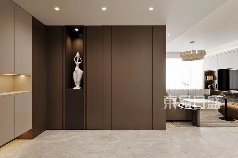 推门而入,首先映入眼帘的便是简约整洁的玄关,精致的木纹与整体浅色调相得益彰,展现出一种宁静与舒适,在进入家门的瞬间,便能感受到家的温馨与舒适。
