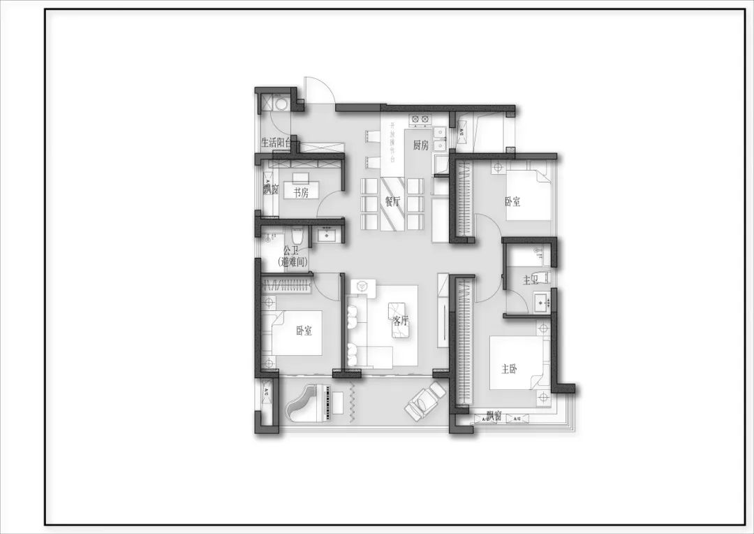 四叶草型全能四房,可改造为儿童房、老人房,一家二宝三代均能容纳,既能满足个人边界感,又能实现家庭亲密关系完美平衡,让房子和家庭一起成长,生活于此一步到位。