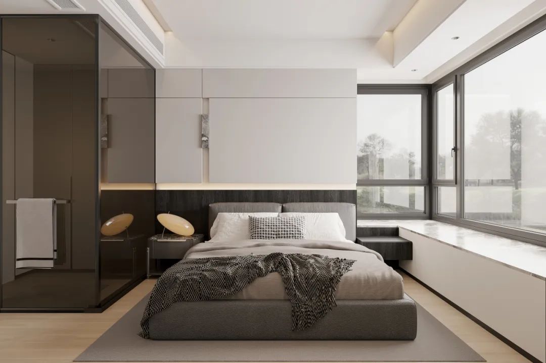 转过身,进入主卧,窗外同样是潺潺的牛田洋江水,将是你起居的背景板。在卧室的设计上,也是精益求精。酒店式套房设计,享有无与伦比的度假式居住体验,私密与便捷兼得。主卧更加带有270度飘窗,极大满足居住舒适性。日常起居视线,不再是车水马龙与霓虹大厦,而是远方的天际线与收获细碎流沙铺成的一江银河。