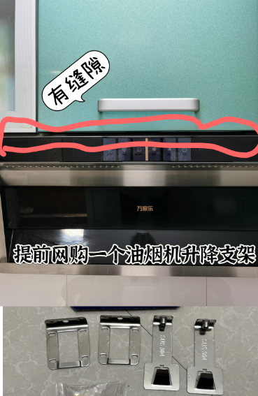 可以去搜【油烟机升降支架】,轻松解决掉油烟机与吊柜的缝隙问题。
