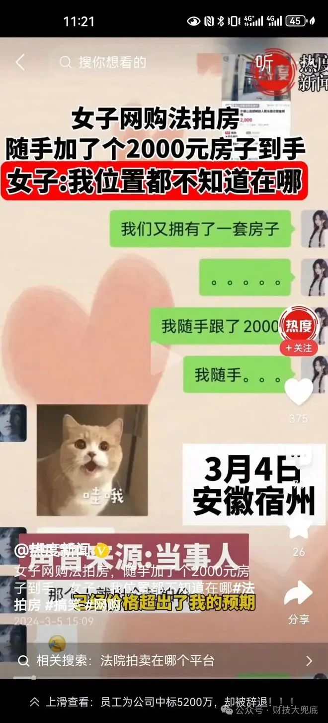 女子后续去看了房子外观,觉得还不错,自己觉得好像赚到了。但是她没有进去房屋内部看,也不知道现在是否有人住,房子的原主人是否涉及其他债务问题都不知道,未来她真的能捞到便宜吗?