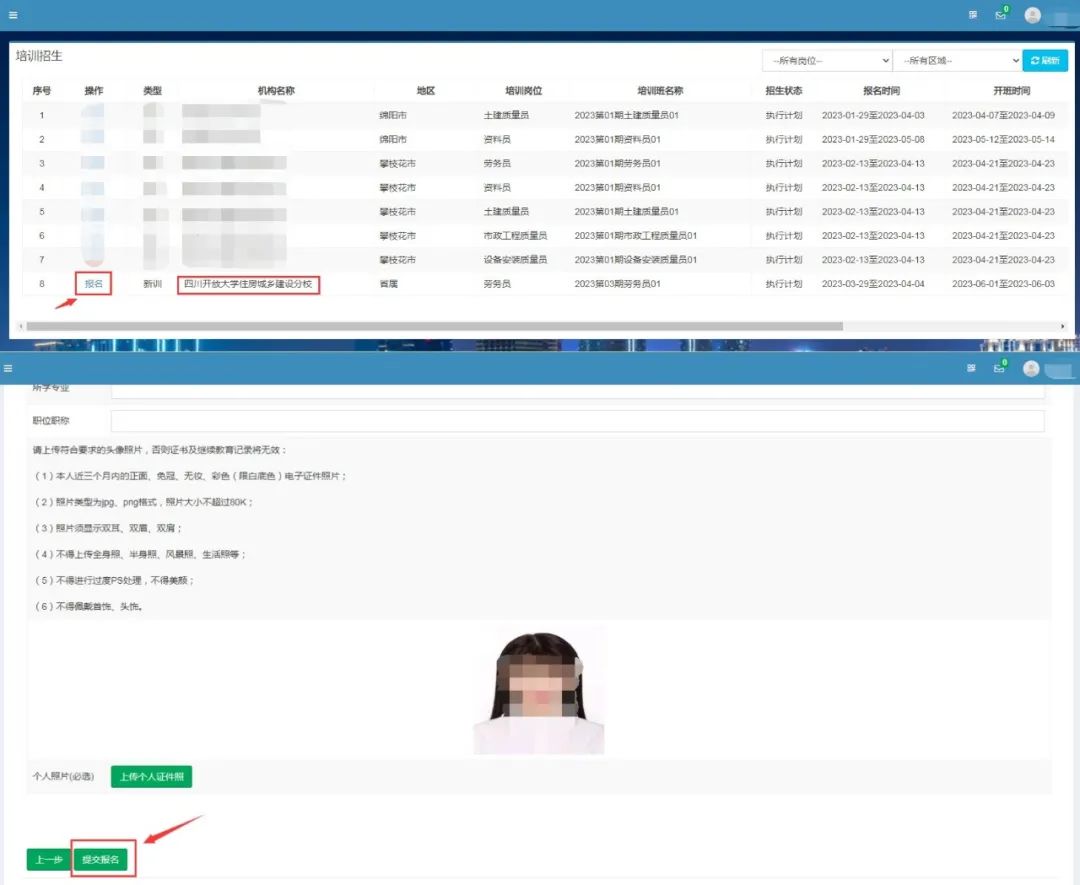提交后,页面会自动跳转到我校的“四川建设学习网”报名端口。