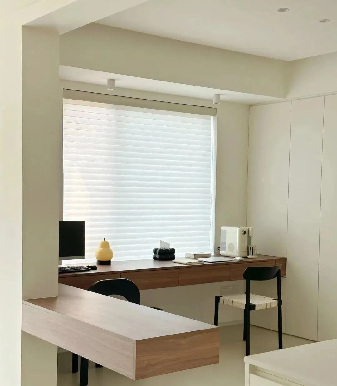 书房/茶厅留白,让书香与气韵无形之中流动开来。不仅可以让场域看起来更加开阔,还有助于集中精神、伏案更加专注: