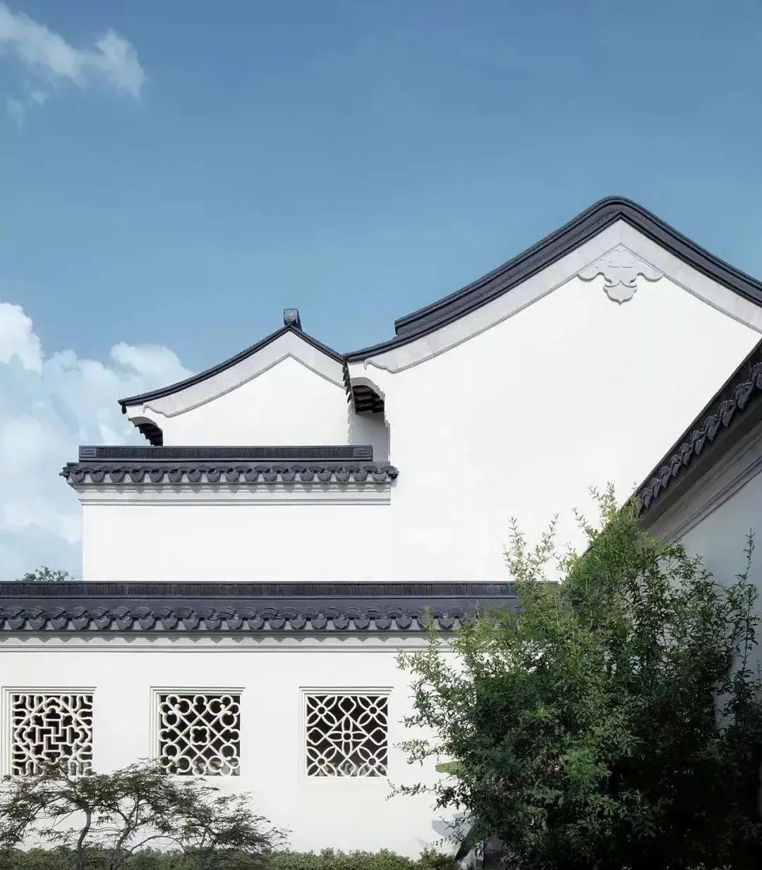 这一美学精粹也常见于中华传统建筑之中,如吸收山水灵气的徽派建筑。庄严肃穆的飞檐翘角不是重点,白色的外立面无垠一片,干净又纯粹,十分夺人眼球: