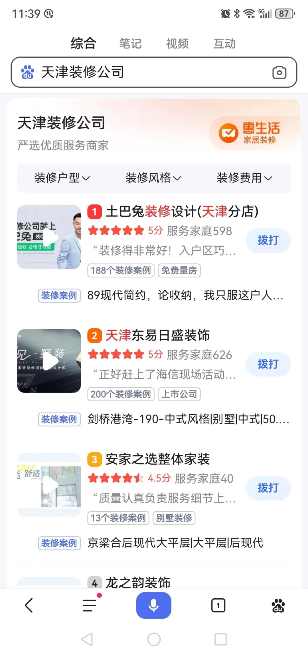 东丽区 | 3 | 1.居然装饰设计 2.全屋整装馆 3.恒泊智能电动门旗舰店 |