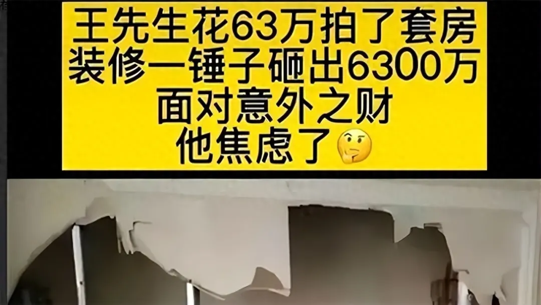 这堵墙让王某觉得很是碍眼,想要砸掉却又害怕是承重墙。正在犹豫,工人告诉王某:可以将这堵墙砸掉一半,只留一半的厚度。王某听后,当即同意了,于是,装修师傅便开始动手了,王某则站在一旁和其他的工人在聊天。不一会儿,装修师傅突然发出了一声惊叹:“小伙子啊,你这么有钱啊?这怎么都藏在墙里啊?咋不放银行啊?”