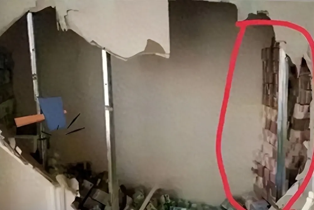 而这些钱又不能放在自己名下的账户,否则就会有暴露的风险,所以,为了将这些现金藏起来不被人发现,就将现金全部藏进了墙里,又把墙砌上了。
