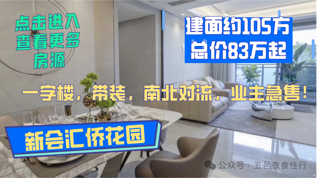 会城宏海新城中层,建面约85方,3房2厅2卫,新装修,没有入住过,总价27万起,业主急售!!