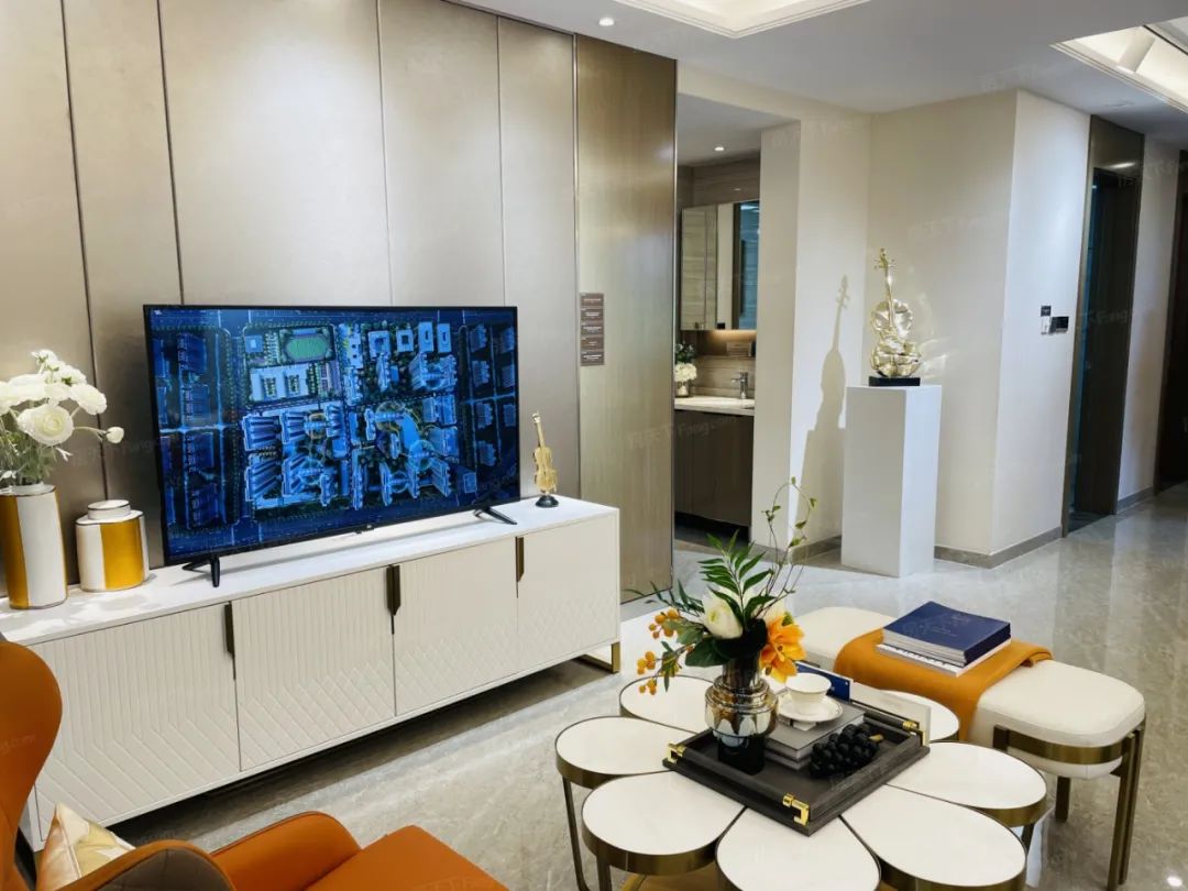 南湖壹号,新会市中心电梯洋房,建面约96方,3房,(图片为样板房)实际以毛坯交付,总价88万起,前后阳台,一字楼,不近路。业主急售!