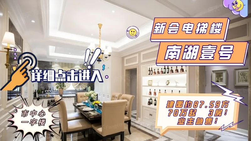 新会 南湖壹号,市中心电梯洋房,建面约87.59方,毛坯,首付21万起 ,总价68万起,前后阳台,一字楼,不近路。业主急售!