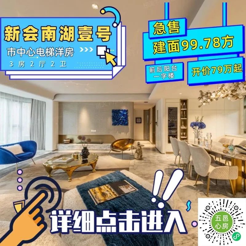 新会南湖壹号市中心电梯洋房,建面约99.78方,3房,毛坯,首付16万起,总价72万起,前后阳台,一字楼,不近路,业主急售!