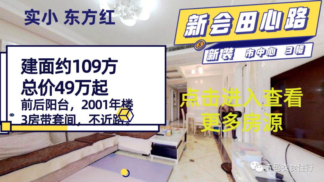 新会中心南 市中心公寓,建面约110方,总价45万起,3房,连地下车房,带装修,前后阳台,一字楼。业主急售!