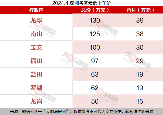 最高的是龙华区130万,其次是南山区125万,以及宝安区100万。